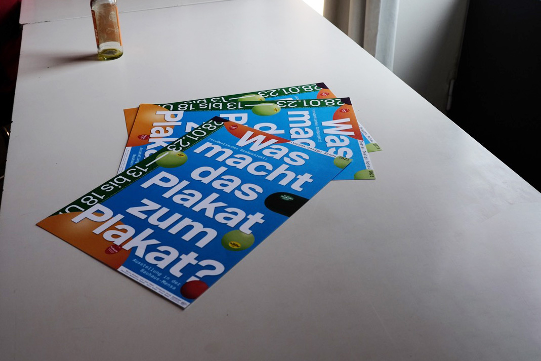 This Exhibition was planned to showcase the "best" posters from a group semester Project and took place in the Bauhaus in Dessau. The Exhibition consisted of three main components: the exhibited posters, a catalogue and a Flyer.